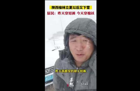 5月21日,有自駕游游客在陜西榆林市靖邊縣到志丹縣國道上遇到大雪,而當天是立夏后突然降雪,也讓人感到很突然。